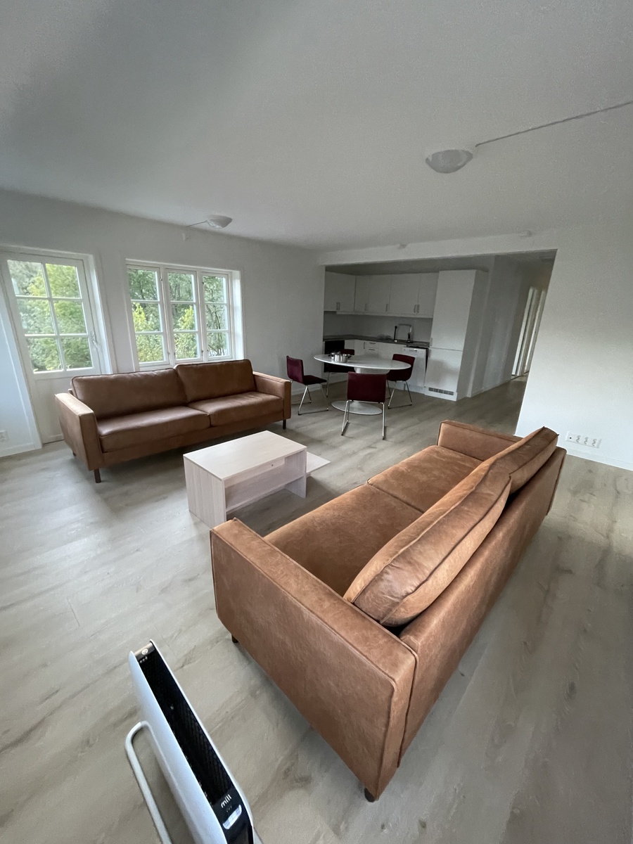 Det grønne huset på Fantoft er rehabilitert. Huset består av to leiligheter, samt kjeller. Leilighet i 2 etg er utleid, men leilighet i 1 etg, med 3 soverom, Stue/Kjøkken, Bad, Bod og gang/VF, er ledig. Boligen blir leid ut møblert.