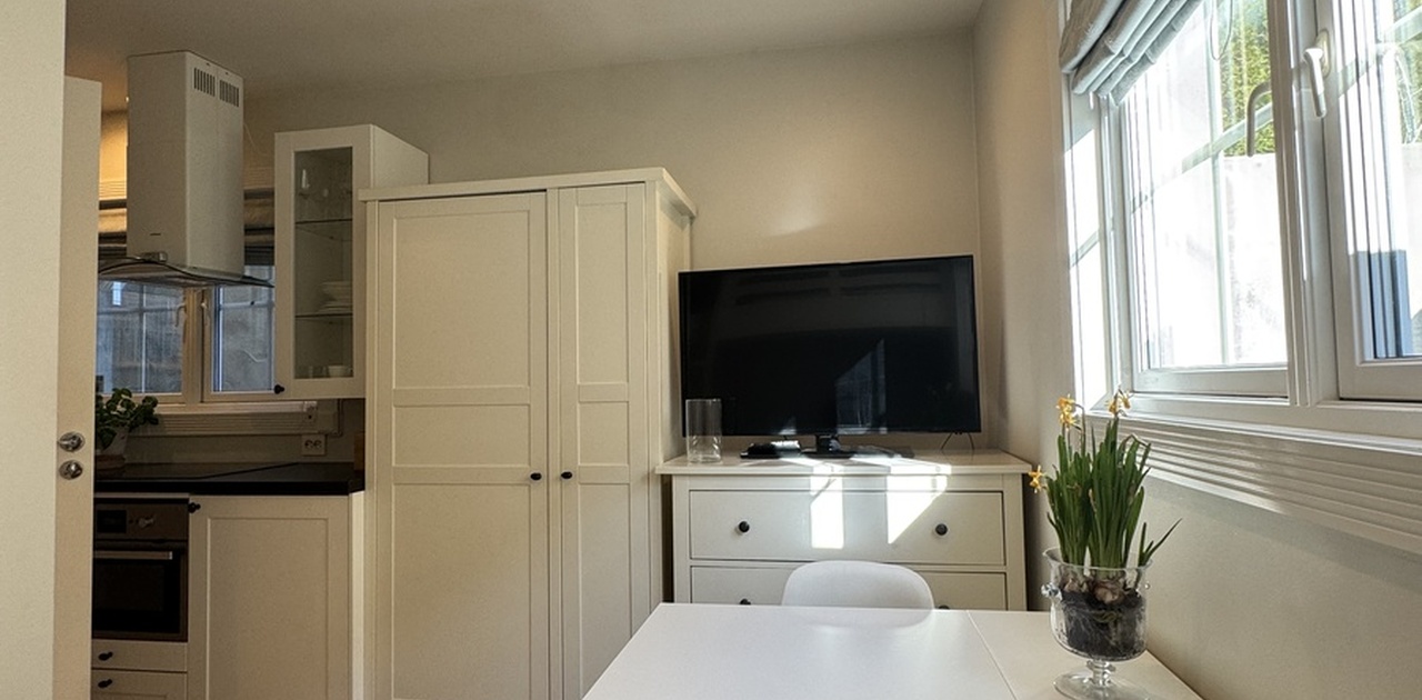 Fullt møblert (hvitevarer, møbler, TV og bestikk/servise)