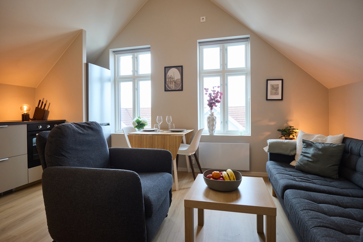 Leiligheten ligger i sentrum med gangavstand til alle byens fasiliteter.