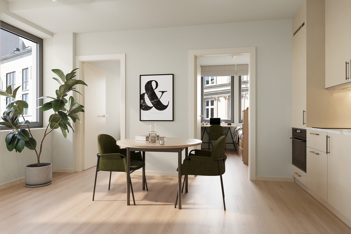 I februar 2026 blir byggetrinn 2 i vårt nyeste prosjekt ferdigstilt! Her kan du bo sammen med en venn og ha hvert deres soverom og hver deres kontorplass. Dere deler et moderne kjøkken og bad. Det er gode oppbevaringsmuligheter med garderobeskap, skuffer under seng og hyller. Boligen er beliggende i 2. - 5. etasje av eiendommen.