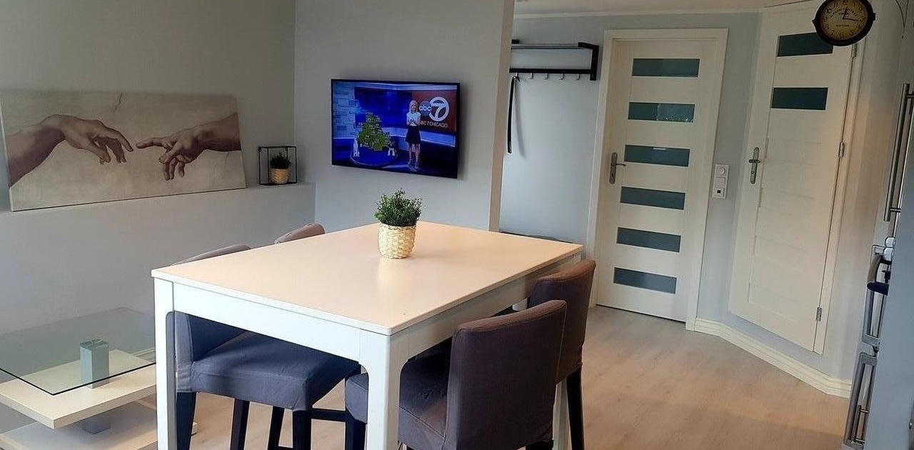 * Pełne Wyposażenie: Do dyspozycji masz kompletną kuchnię, salon, osobną sypialnię i łazienkę. Mieszkanie jest w pełni umeblowane i wyposażone we wszystkie sprzęty.