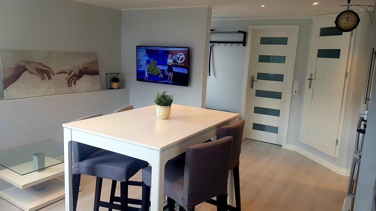 * Pełne Wyposażenie: Do dyspozycji masz kompletną kuchnię, salon, osobną sypialnię i łazienkę. Mieszkanie jest w pełni umeblowane i wyposażone we wszystkie sprzęty.