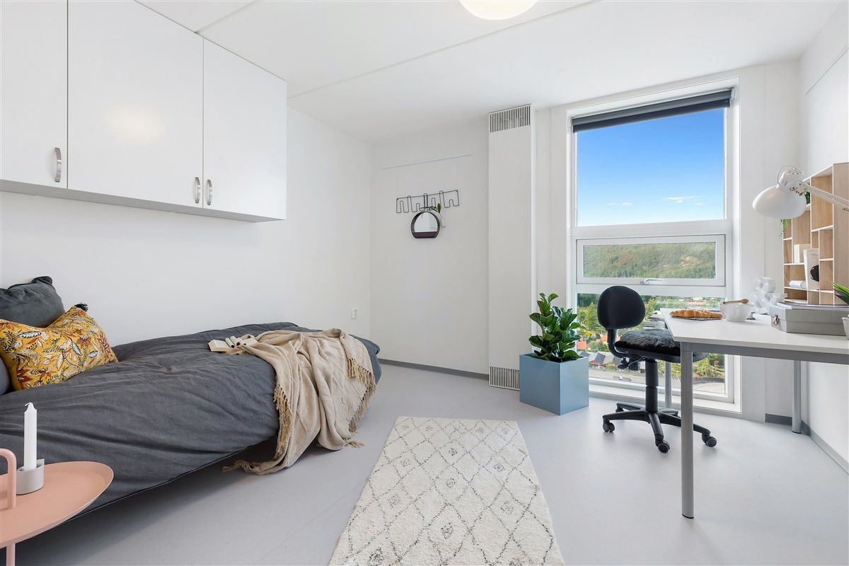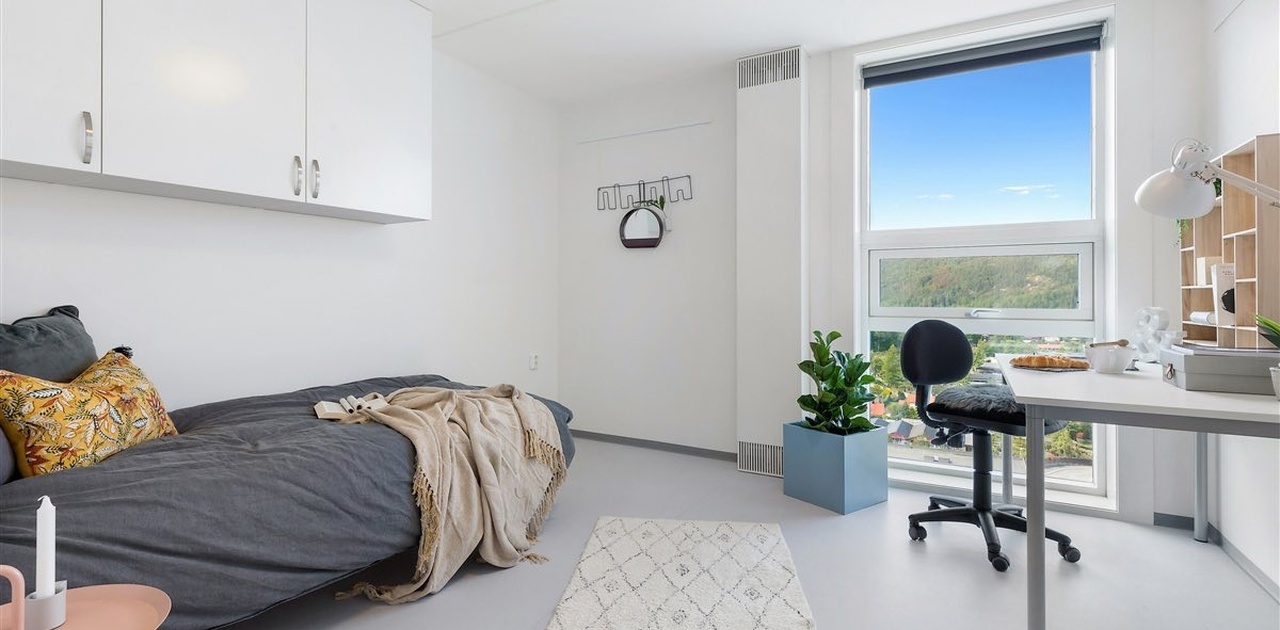 Jeg fremleier min studenthybel på Fantoft fra 1. oktober 2025 til 31. januar 2026. Rommet er 17 kvm, har eget bad og delt kjøkken og stue. Rommet er møblert med en enkeltseng, klesskap, skrivepult og stol. Man må være student for å bo her. Send meg en melding om du er interessert :-)