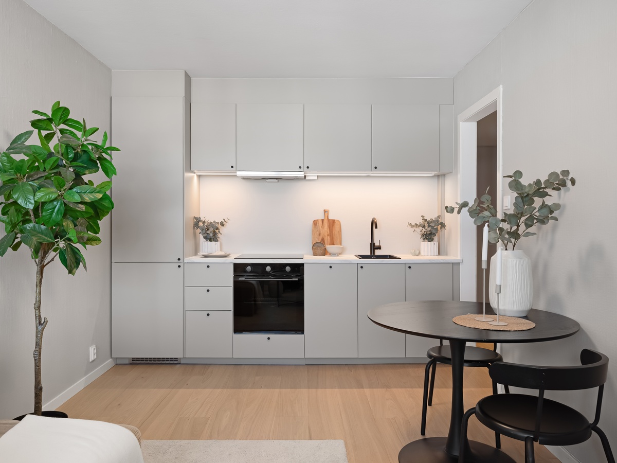 Leiligheten ble overflateoppusset i 2025 og er moderne og innbydende. Ny kjøkkeninnredning, flotte gulv og lekker baderomsinnredning. Leiligheten leies ut umøblert.