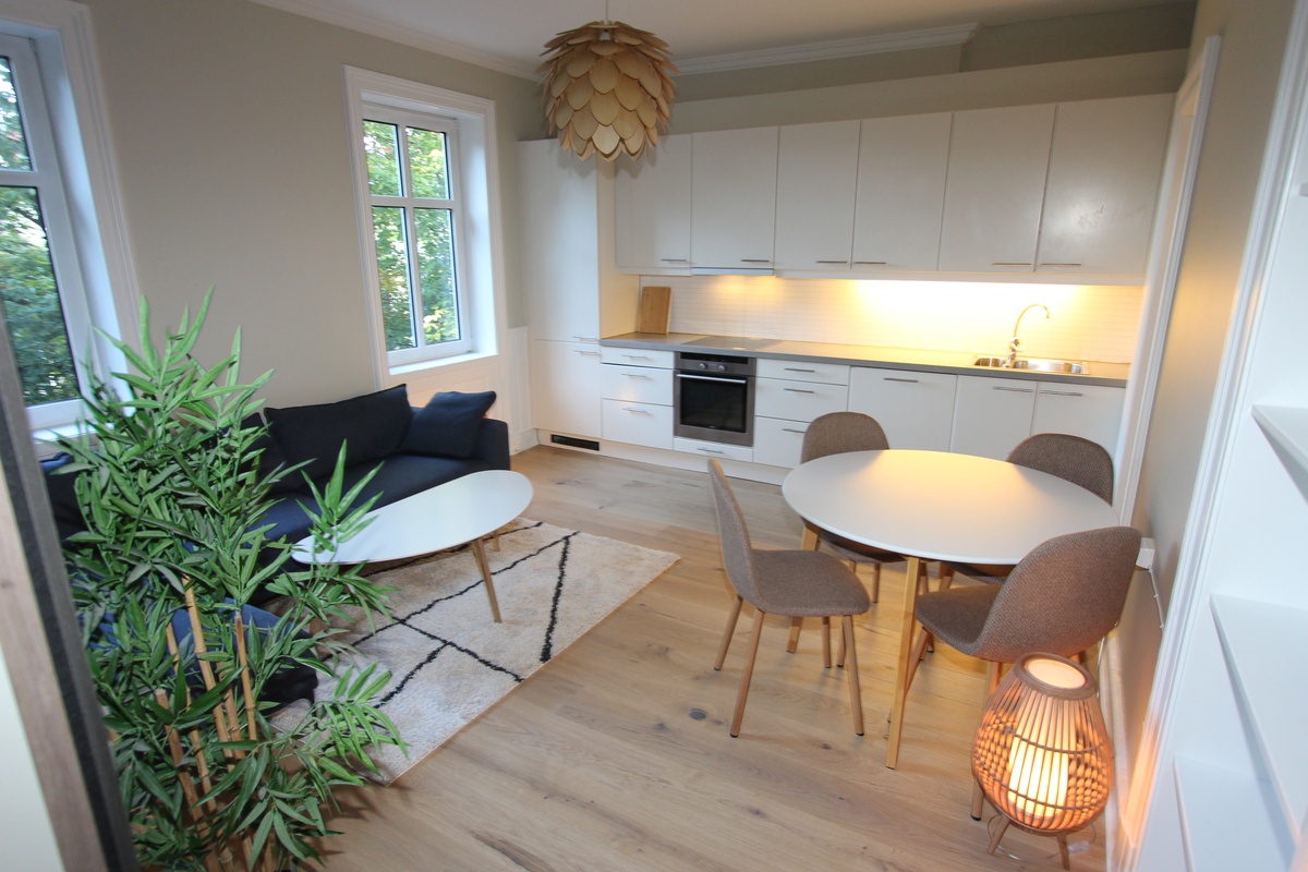 Leiligheten har 4 soverom, felles stue, kjøkken og bad, og er fullt møblert og klar for innflytting. Her bor du komfortabelt og praktisk, med alt du trenger: