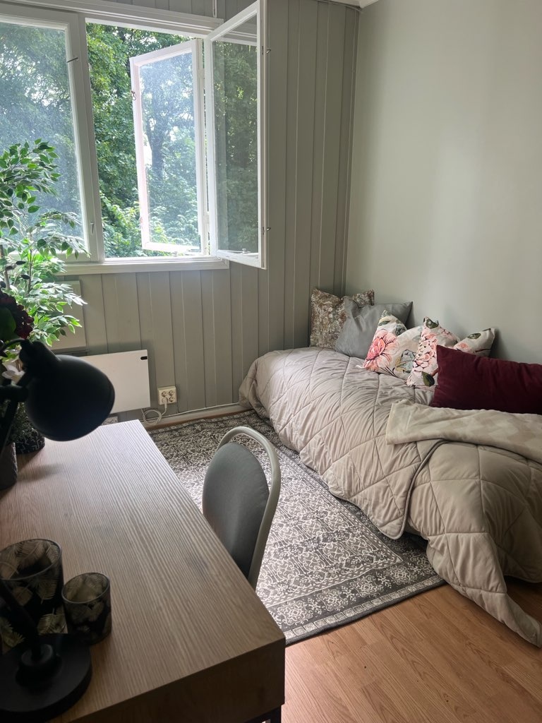 Jeg leier ut et lyst rom i en stor leilighet over to etasjer, bare noen minutters gange fra Torshovparken. Leiligheten er delt med flere hyggelige leieboere (mest gutter), og i andre etasje finnes det hele tre bad, så man slipper mye ventetid.