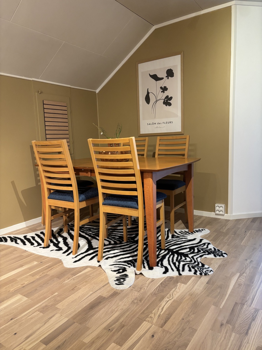 Vi leier ut en praktisk, nyoppusset leilighet i en tomannsbolig, beliggende i andre etasje med egen inngang fra første etasje.