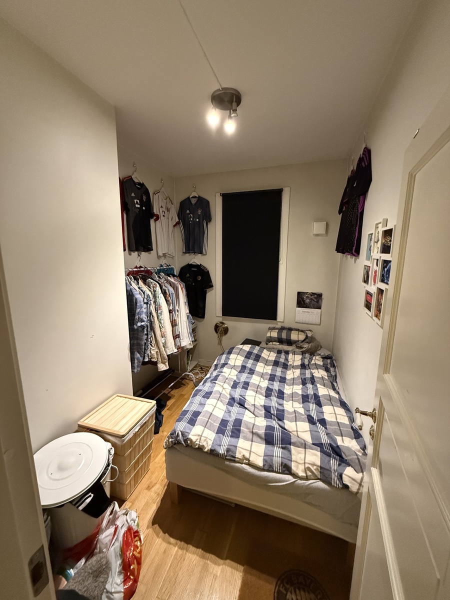Hele leiligheten er på 67kvm, med stor stue. Rommet som blir ledig er på ca 6kvm, med plass til seng, skrivebord, nattbord etc. Det er det minste av de to soverommene, men du betaler også mindre i leie. Åpen for å bytte rom etter hvert, om ønskelig.