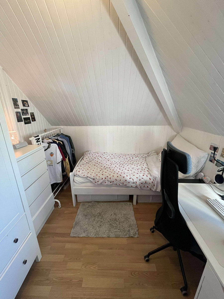 Rommet er på ca 8.5 m2 og det store kleskapet og kommoden følger med. Mulighet for kjøp av resterende møbler etter ønske.
