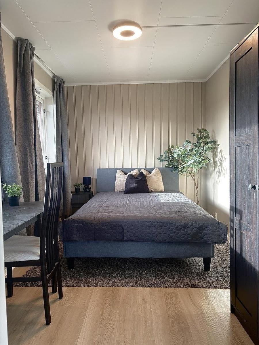 Fullmøblert rom i nyoppusset bolig i Lillestrøm kommune.