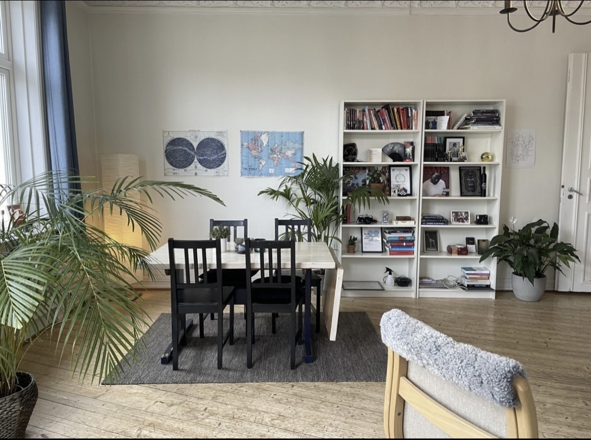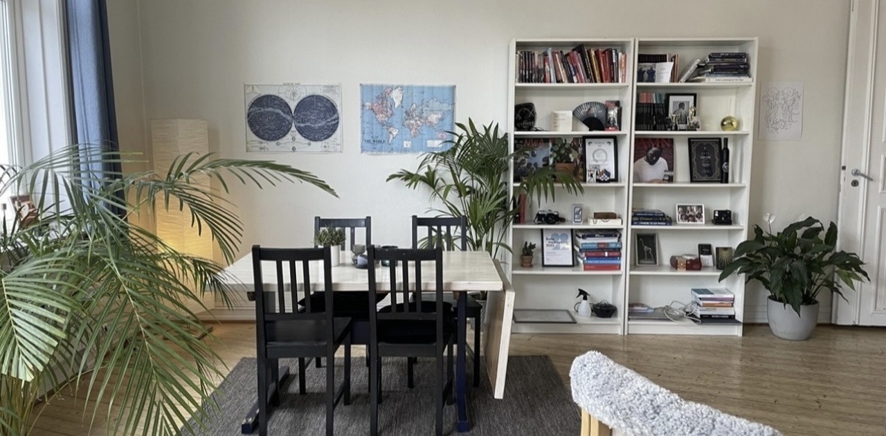 Resten av leiligheten er veldig romslig, så selv om vi er 5 til sammen oppleves det ikke som om vi bor oppå hverandre. Leiligheten har stor stue med balkong, separat kjøkken, samt bad med dusj og separat toalett.