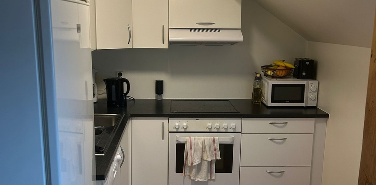 Fullt utstyrt kjøkken, vaskemaskin og tørketrommel