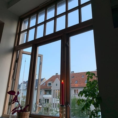 Leiligheten har et stort og lyst oppholdsrom der kjøkken og stue er kombinert. Det er store vinduer med utsikt over gatene på Møhlenpris, og kort vei til sentrum, bybane og buss. Nygårdsparken ligger like i nærheten, og området har flere koselige kafeer og dagligvarebutikker som holder åpent på søndager.
