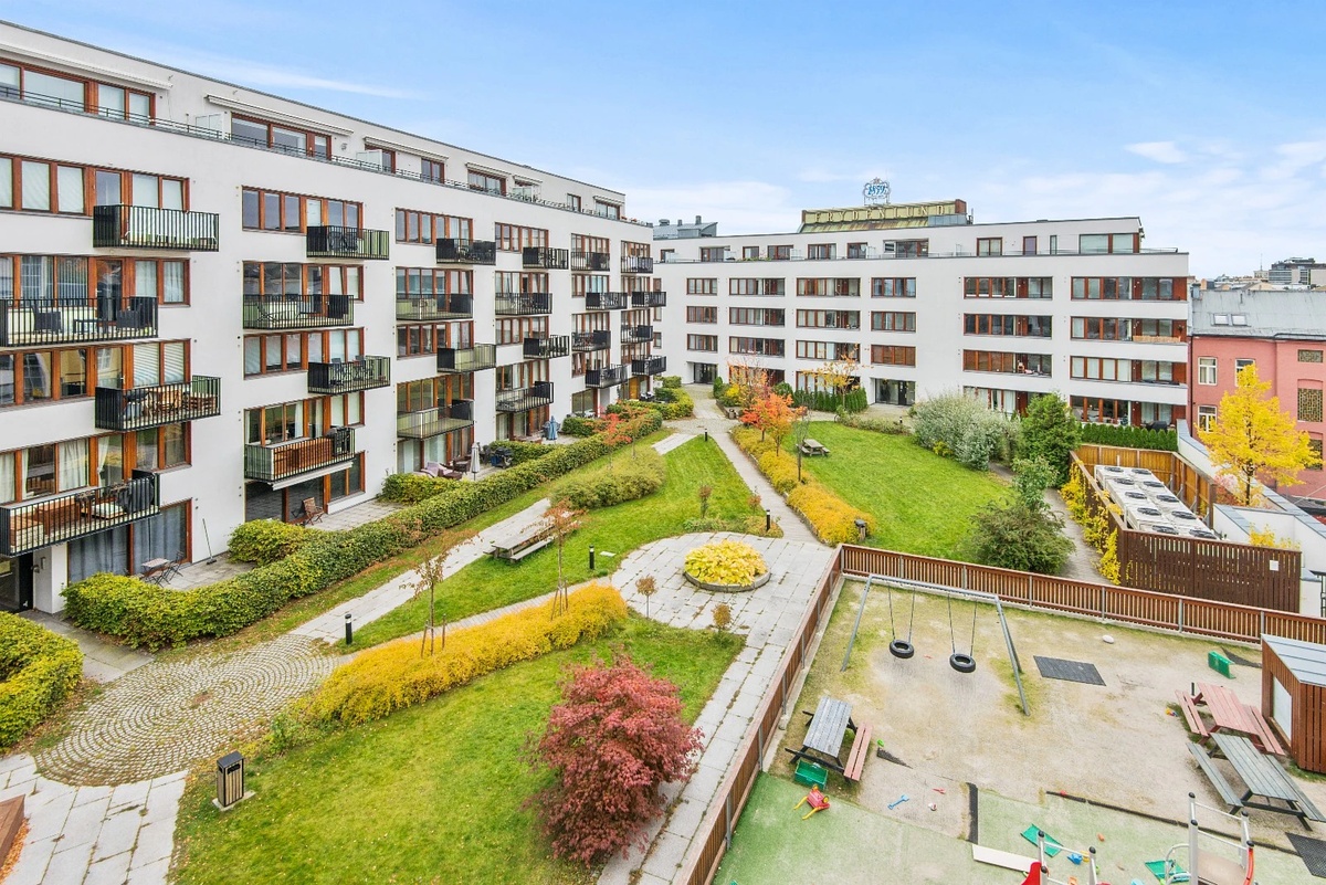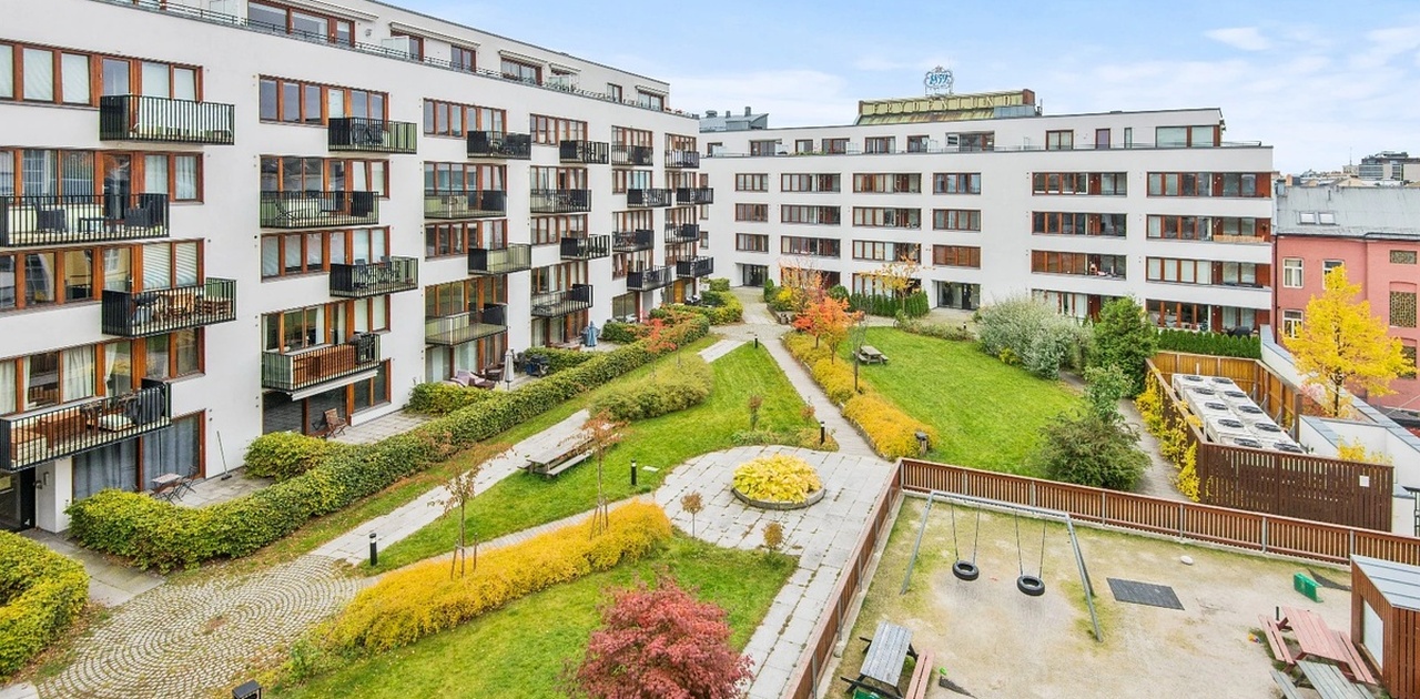 Det er i tillegg til leilighetens balkong tillgang til stor felles balkong med utendørs møbler i sameiets 7 etasje som kan benyttes av beboere. Herfra er det delvis innsyn til Bislett Stadion.