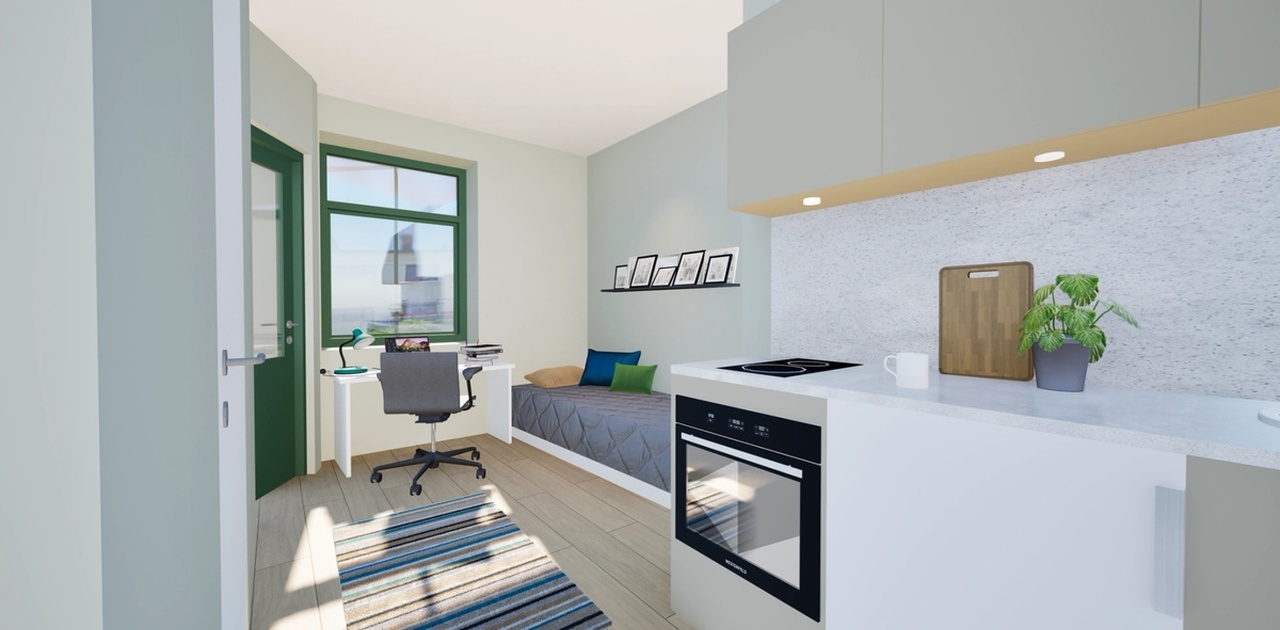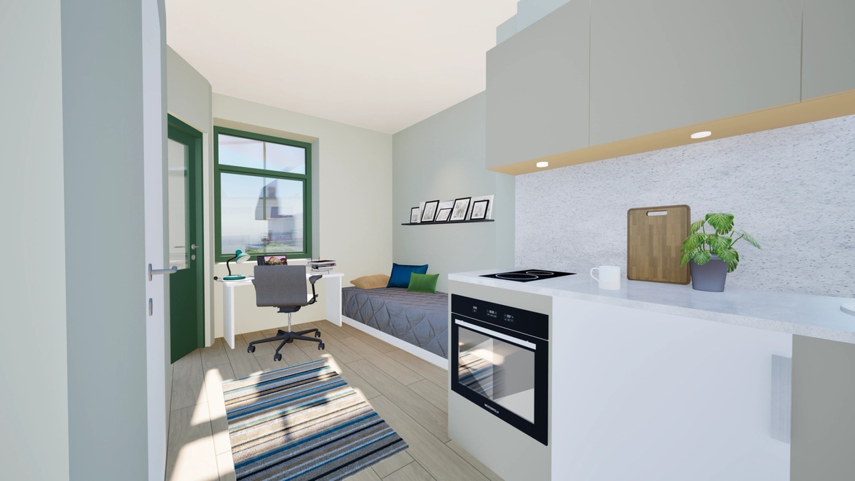 Hei! Jeg leier ut min studentbolig i Lotheveien. Studentboligene er helt nye, og ble ferdig sommeren 2025. Hybelen inneholder et eget kjøkken og bad, pult og stol, garderobeskap og seng. Det følger også med en liten balkong, som deles med en annen nabo.