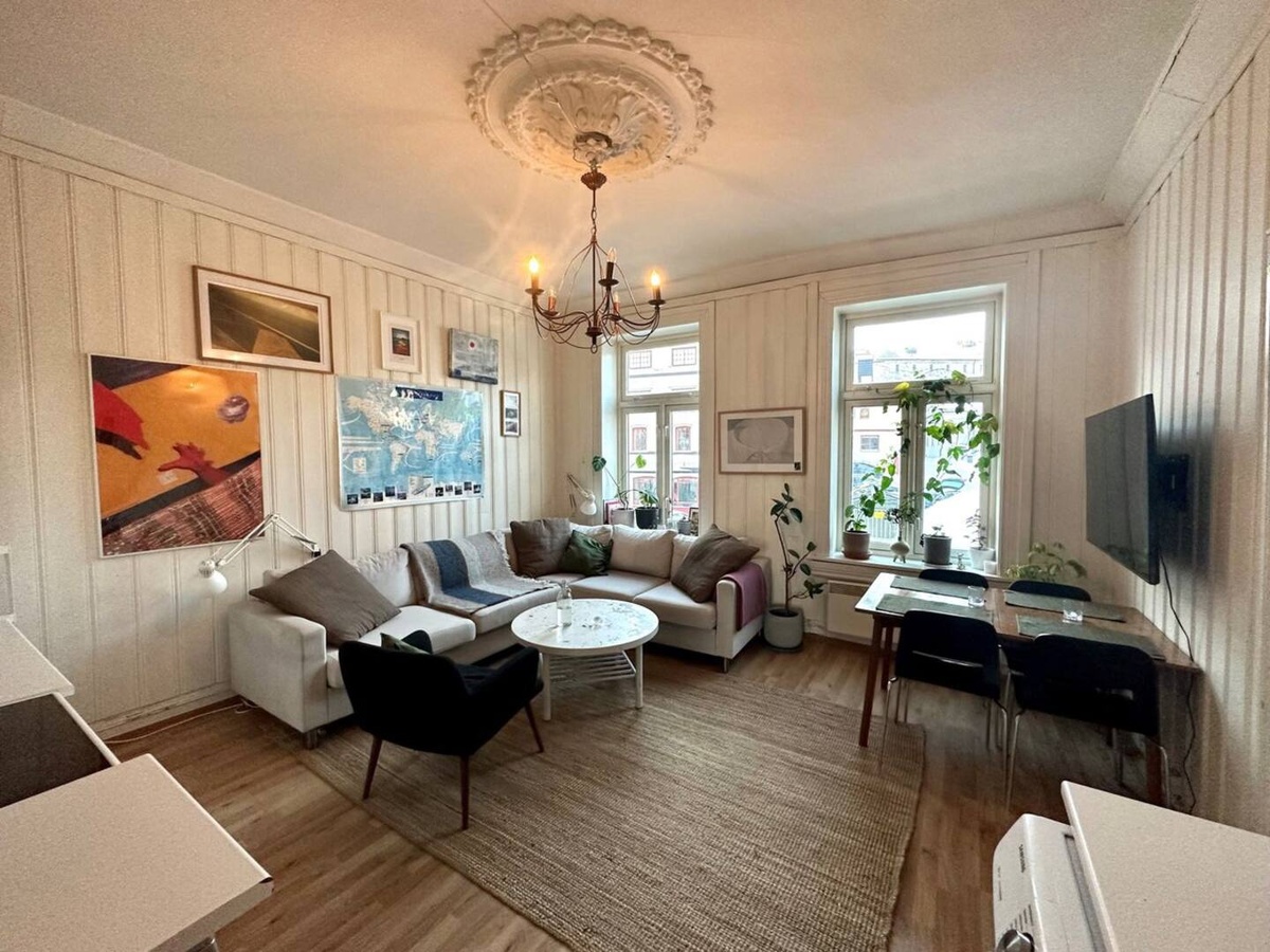 Leiligheten ligger i 2. etasje, og har god takhøyde med rosett og store vinduer som skaper en åpen og luftig atmosfære. Leiligheten er møblert (inkl. TV, vaskemaskin/tørketrommel og alt av hvitevarer) og klar for innflytting, men møbler kan også fjernes hvis det er ønskelig.