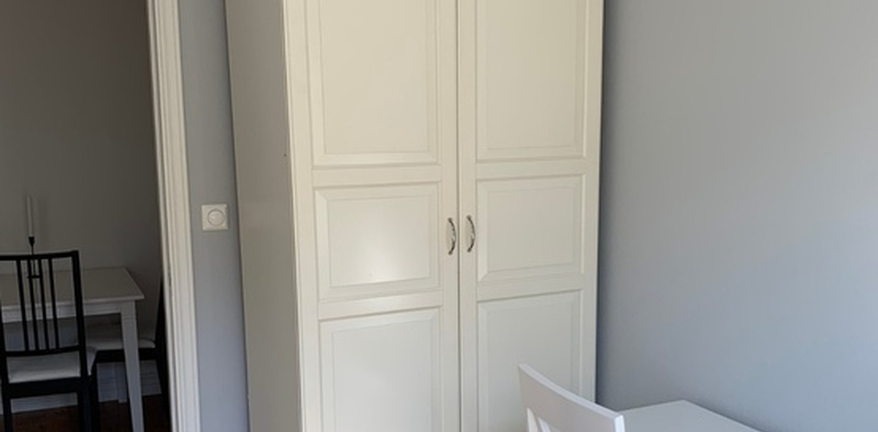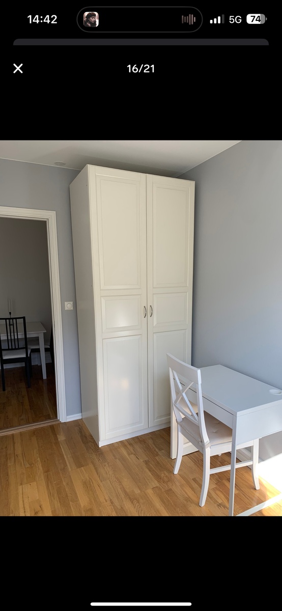 Leies ut møblert. Det er en 140 seng, pult, stol, nattbord og skap på rommet. Dette kan følge med om ønskelig, men fjernes om det ikke er ønskelig (med unntak av skap) Fyring og vann er inkludert i leien!