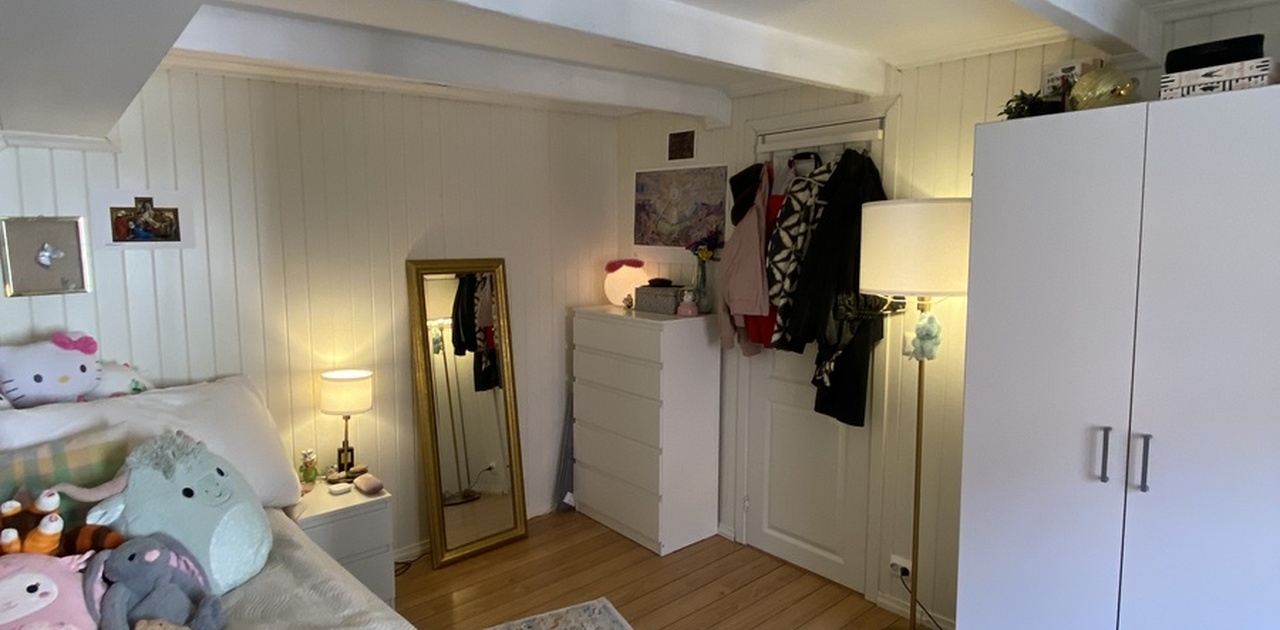 Derfor vil jeg gjerne leie ut rommet mitt til en jente i et jentekollektiv/hus, med store fellesområder- stor stue, stort kjøkken, uteområde/bakgård og felles bad