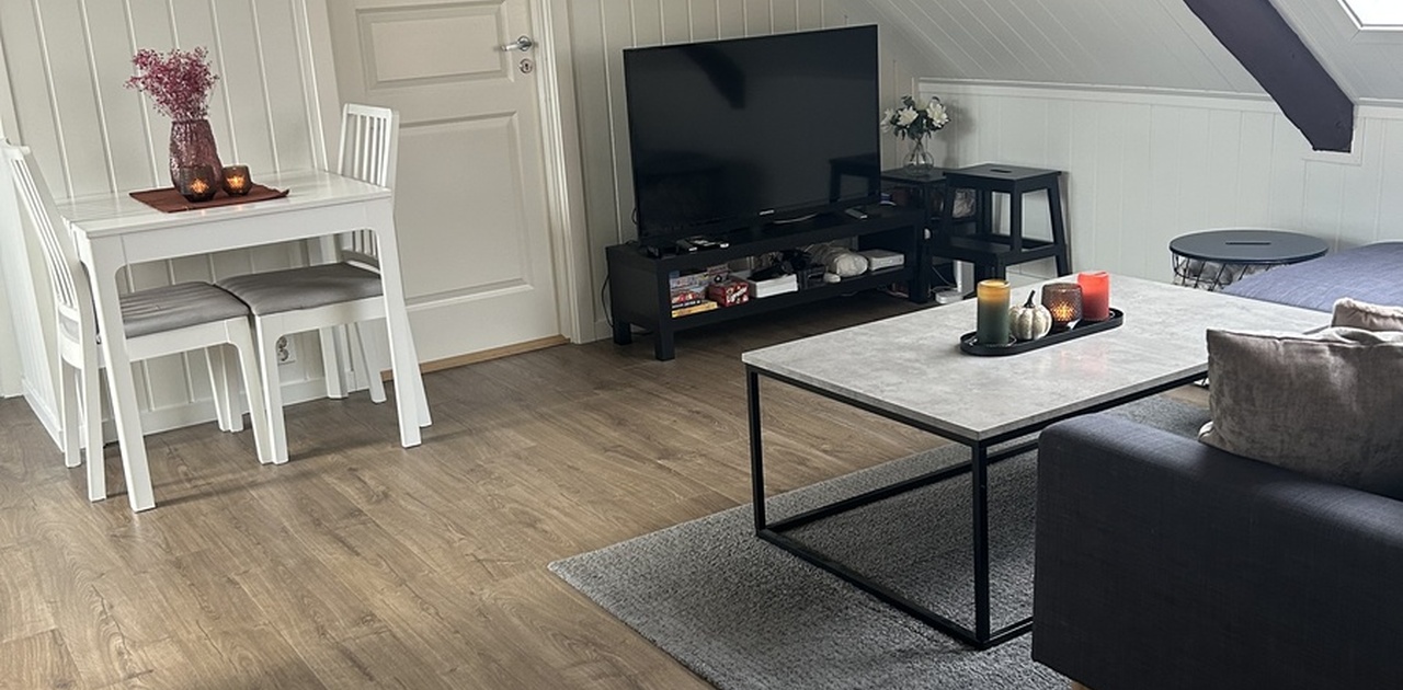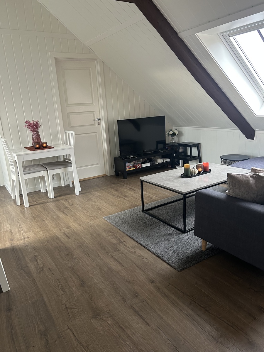 1 rom leies ut fra 01.01.2026, da nåværende leietaker flytter hjem. Rommet er møblert med garderobeskap, og har god plass til andre møbler. Resten av leiligheten er møblert, og fullt utstyrt med alt man trenger.