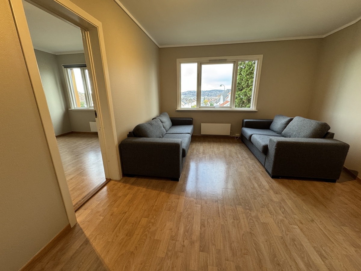 Leiligheten ligger i 2. etasje og har stue med gode lysforhold, to soverom, kjøkken med hvitevarer og bad. Bredbånd og hvitevarer er inkludert i leien. Ikke røyk. Ikke husdyr. Se oversikt over leiligheter vi får til leie på hjemmesiden vår kambo(.no) under fanen "Bolig til leie".