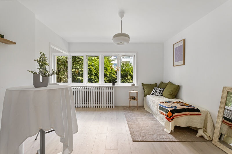 Velkommen til Bygdøy allé 35! En lys og moderne 1-roms leilighet på 22 m² med svært sentral beliggenhet i hjertet av Frogner. Leiligheten ligger i høy første etasje mot en rolig bakgård med grønn hage – høyt nok til at ingen kan se rett inn, og med en koselig utsikt mot det grønne.