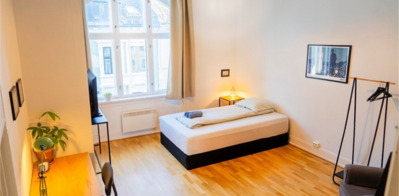 Rommet passer for én person. Du deler kjøkken og bad med én person til. Den andre personen som bor i leiligheten er en kunstner som også har en bedrift i nabolaget.