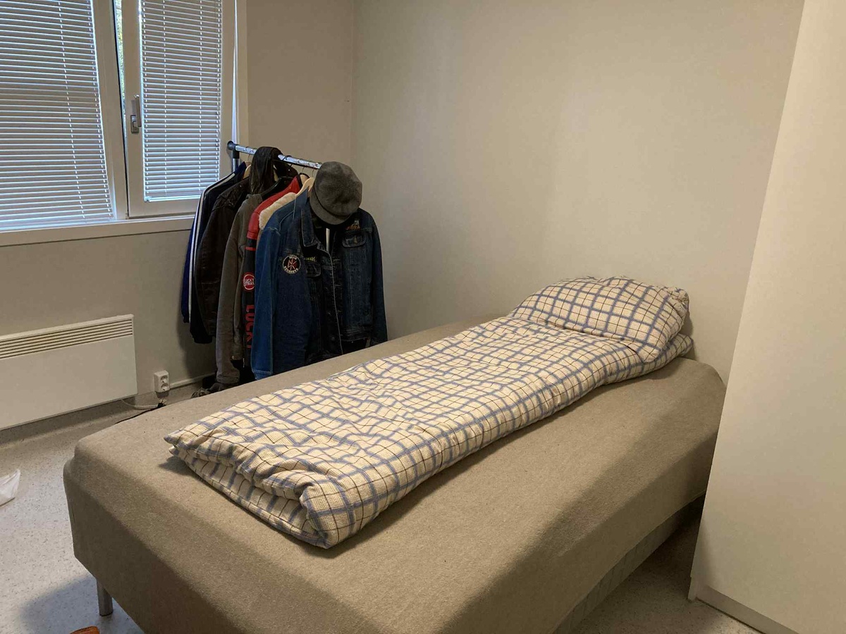 leiligheten er møblert med en seng, egen pult og klesskap.