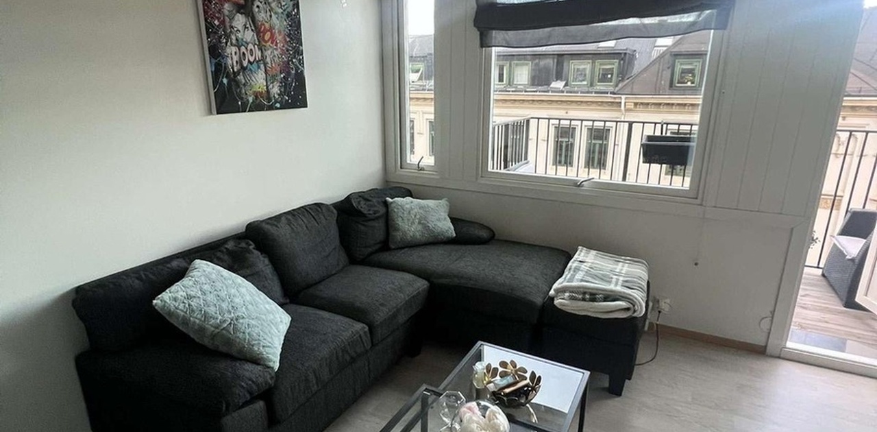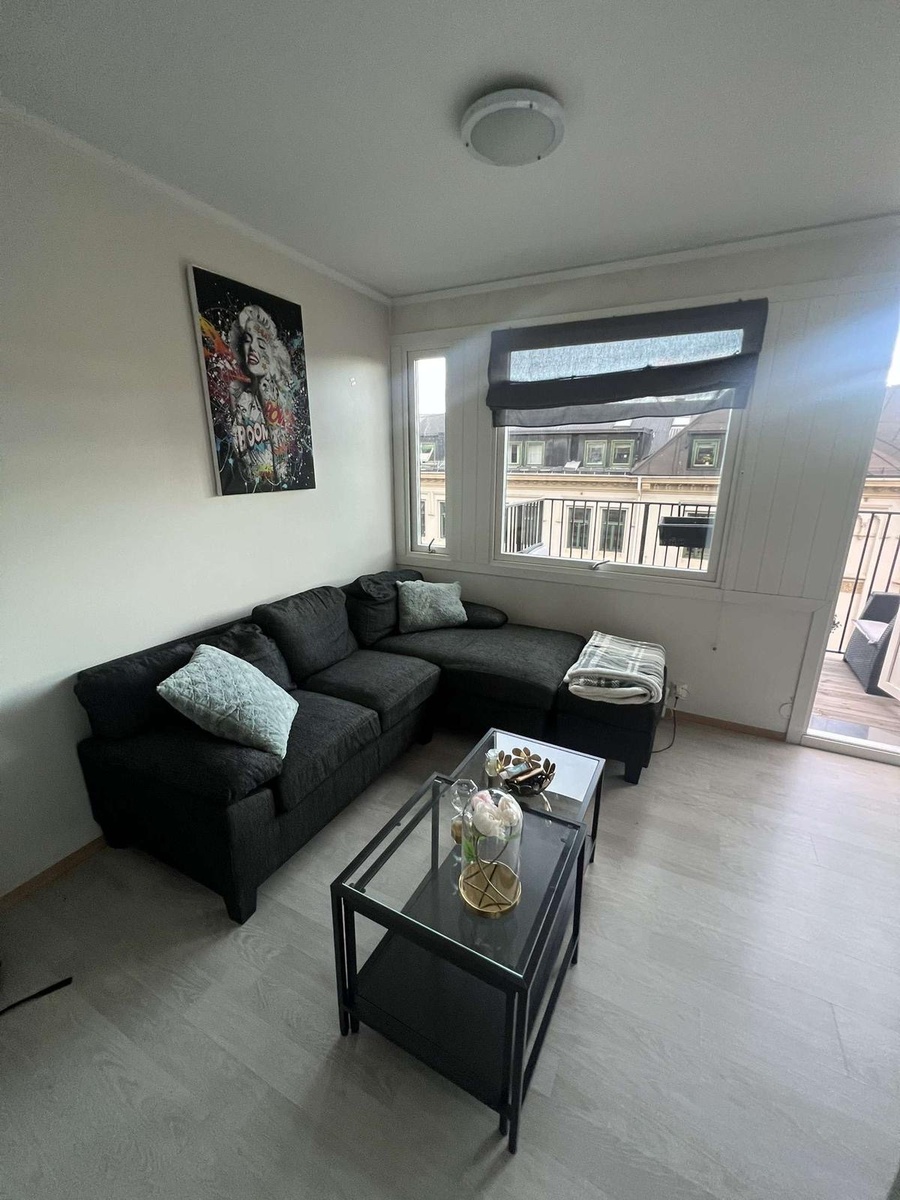 Leiligheten er fullt møblert og leies ut med det meste av kjøkkenutstyr. Den har en varm og trivelig atmosfære, med store vinduer som slipper inn mye naturlig lys.