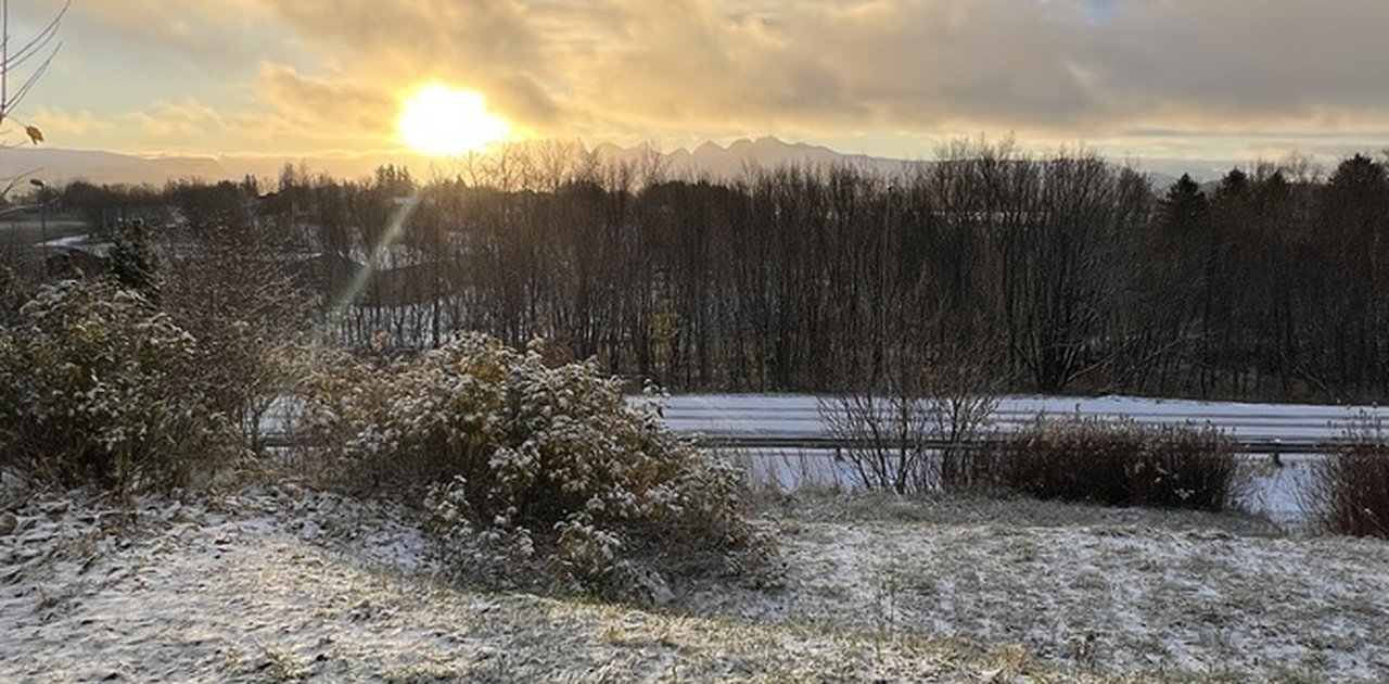 Fra stua, inngangsparti og hybel 1 er det nydelig utsikt mot Børvasstindan.
