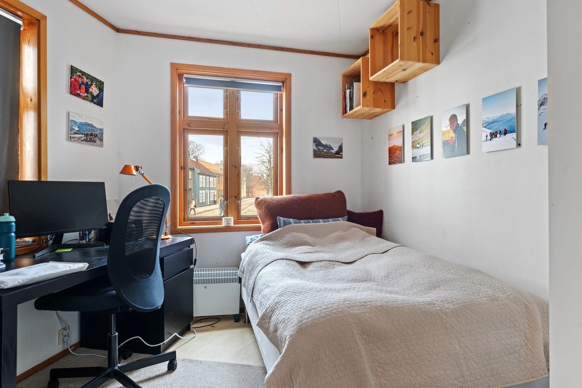 Det leies ut et rom i enebolig i kjede på Bakklandet, et av Trondheims mest attraktive og sjarmerende boområder. Boligen ligger sentralt og rolig til, med kort vei til sentrum, NTNU Gløshaugen og Solsiden. Fra huset er det kun få meter til elvepromenaden langs Nidelva, samt koselige kafeer og småbutikker i de brosteinsbelagte gatene på Bakklandet.