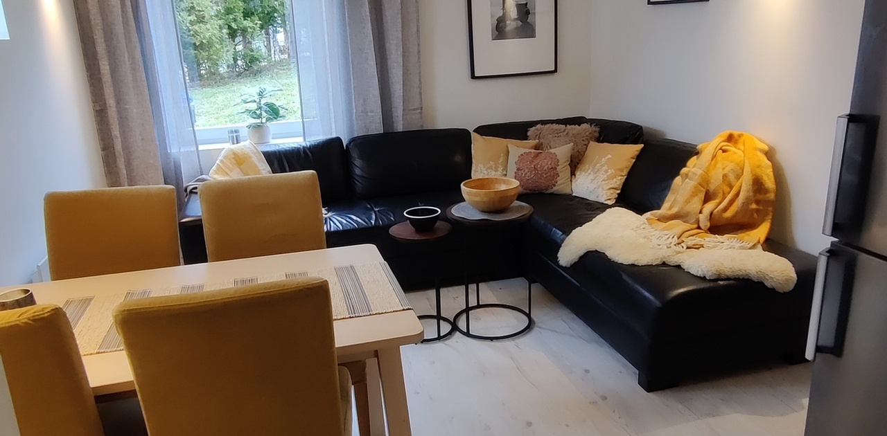 Viktig: Kledningen på boligen holdes på å byttes ut. Dette er forventet å være ferdig i god tid før nyåret ifølge snekker. Det vil da være nye yttervegger og etterisolert i tillegg til ny terasse. Leiligheten leies ut umøblert, møblene på bildet følger ikke med.