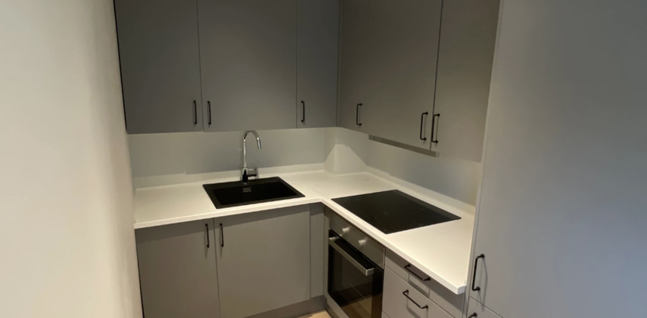 Det har kun bodd én leietaker der siden det ble pusset opp. Hun har nå møblert hybelen og kan ta bilder hvis det er ønskelig å se det møblert. Spisebord og mikrobølgeovn følges med om ønskelig.