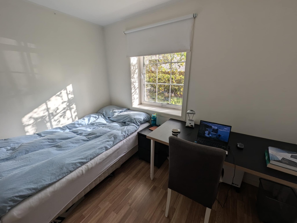 Leiligheten har 4 soverom, der det bor 3 andre gutter. Det ledige rommet ligger i motsatt ende av alle andre soverom, stue og kjøkken. Det gir rommet en god og privat følelse.