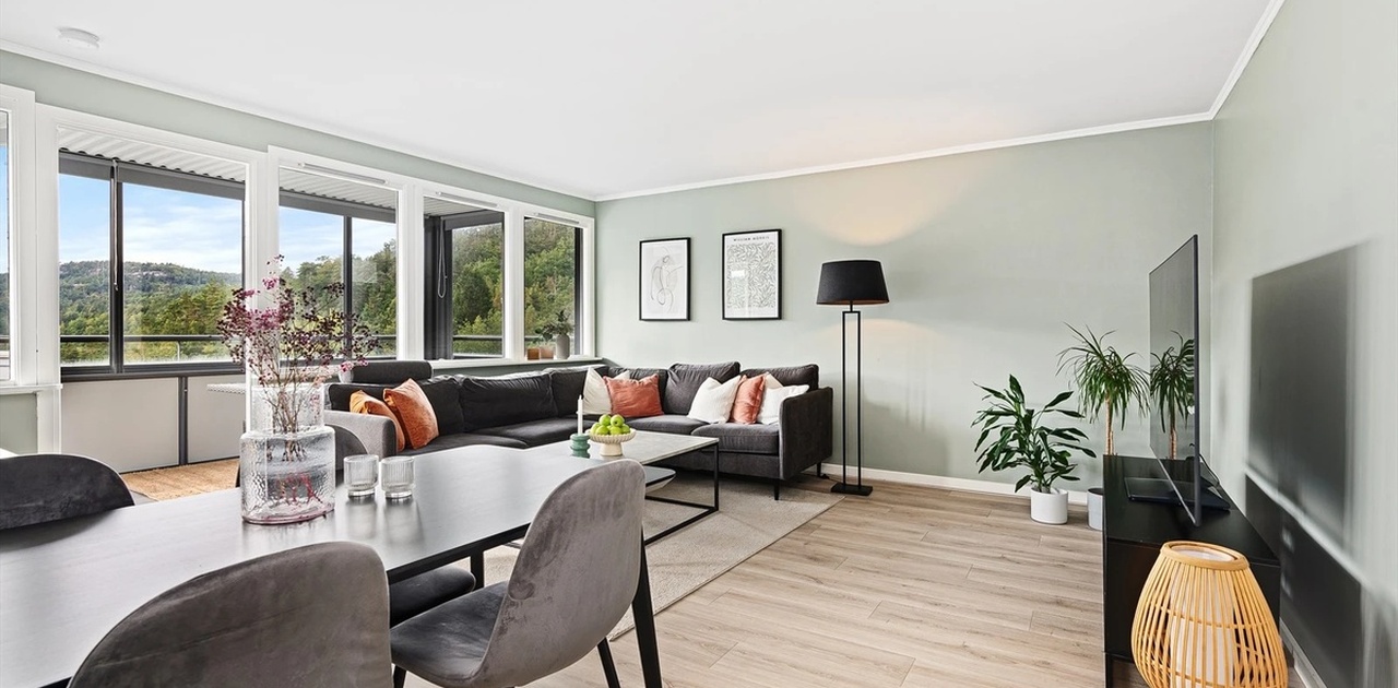 Velkommen til en lekkert oppusset leilighet i Gamle Mandalsvei 16. Leiligheten ligger i byggets øverste etasje og heis tar deg raskt og enkelt hjem til riktig etg. Den ligger som en hjørneleilighet og inneholder følgende rom: