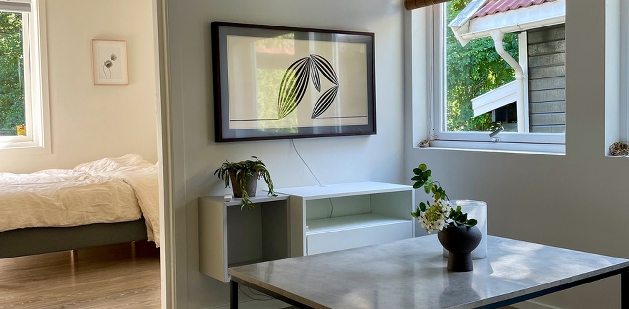 Hybelen ligger i 1. etasje i enebolig. Vi er en barnefamilie med to små barn.
