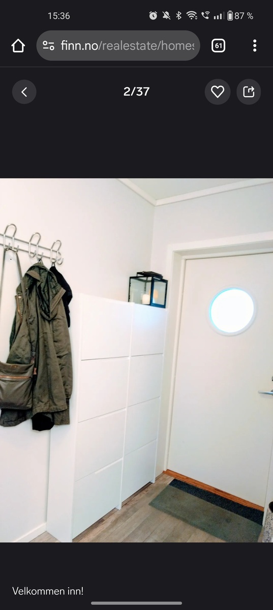 Leiligheten er ikke møblert, men hvitevarer følger med. Det er også innebygd skyvedørsgarderobe i begge soverom. Vaskemaskin på badet.