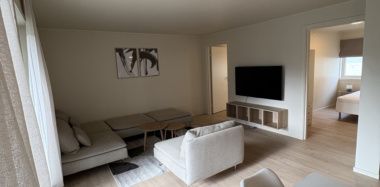 - Romslig åpen stue/kjøkken løsning med utgang til balkong