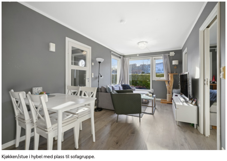Hybelen har privat inngang og egen parkeringsplass. Den består av en kombinert stue/kjøkkendel, separat soverrom, et romslig bad samt entre og bod. Den leies ut fullt møblert med seng, garderobe, sofa, sofabord og spisebord med stoler.