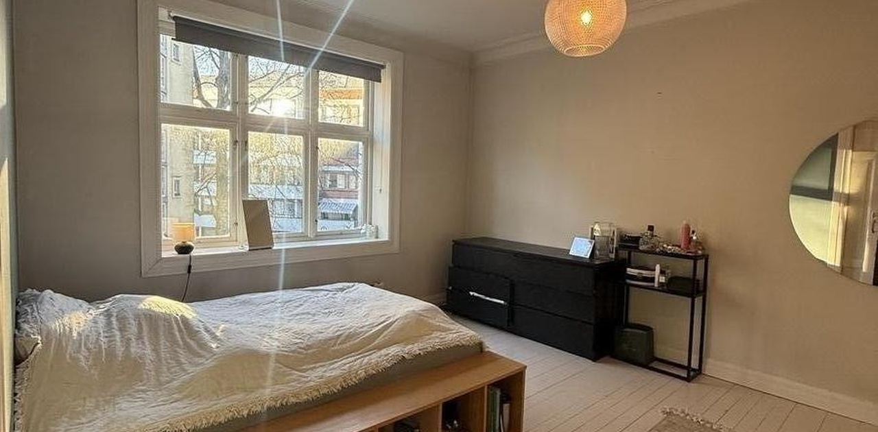 Vi leier ut et stort og lyst rom i et hyggelig bokollektiv midt på Majorstuen – supersentralt, men samtidig stille og rolig. Leiligheten ligger rett ved Frognerparken og Bogstadveien, med kort vei til trikk, T-bane, butikker og kafeer.