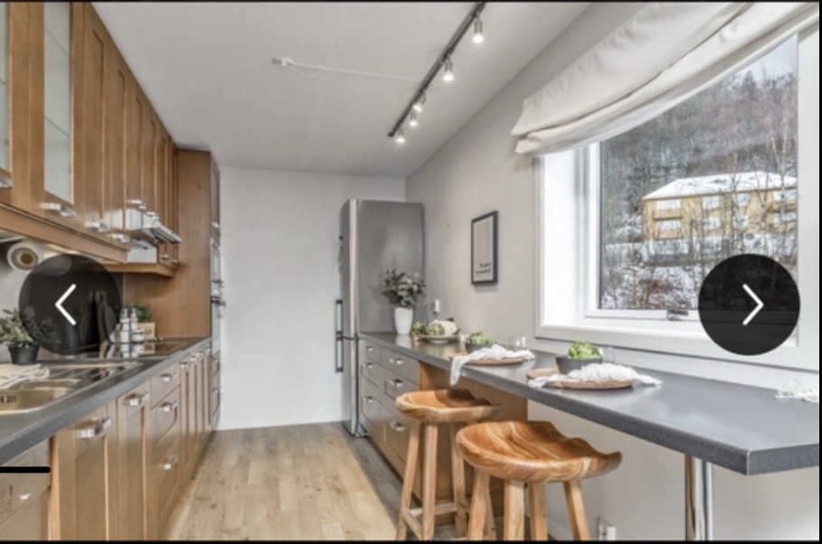 - Leiligheten er utstyrt med et bad med dusj og separert toalett. Fellesarealet består av en svært stor stue og stort kjøkken med fin utsikt over Bergen sentrum, Ulriken og fløyen. Kjøkkenet er utstyrt med det meste av kjøkkenutstyr og bakeredskaper som brukes i fellesskap. Du får også en egen stor skuffe + et dobbelt-skap til å ha ting i på kjøkkenet.