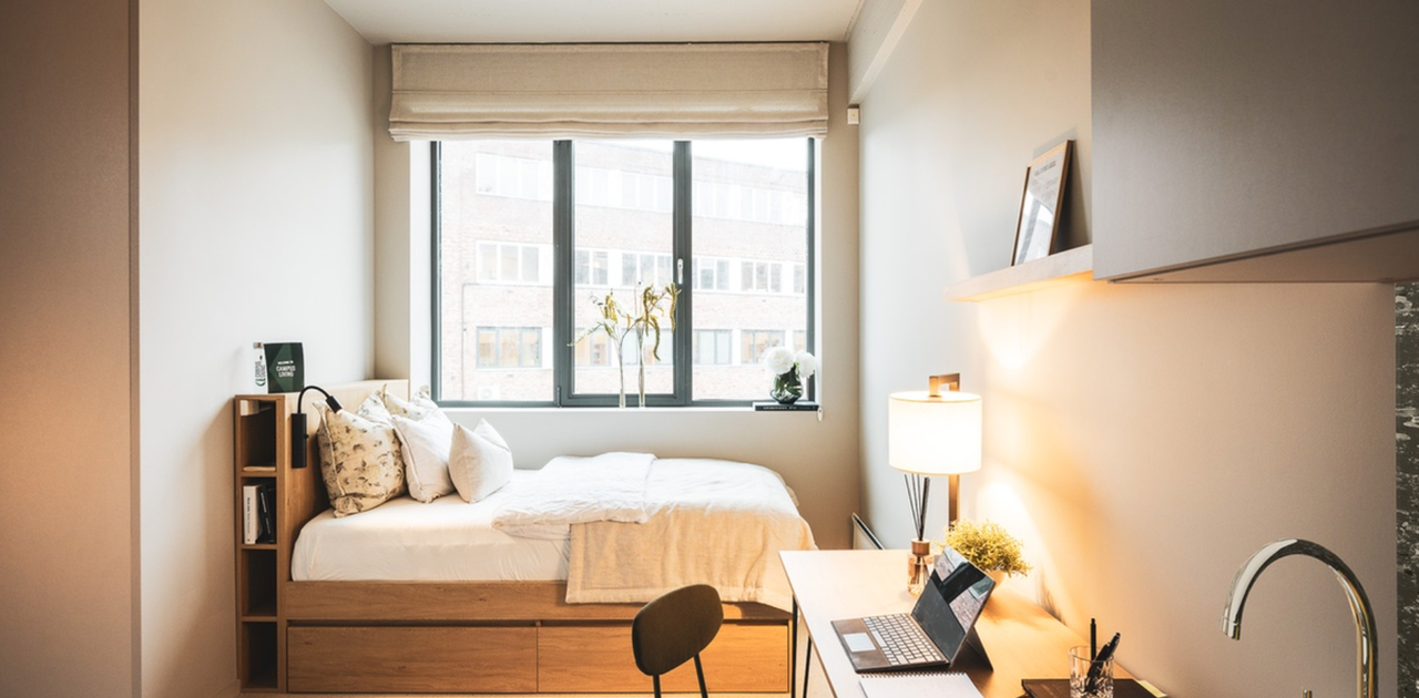 Bildene er lånt fra Campus Living. Planløsningen i denne hybelen er speilvendt.