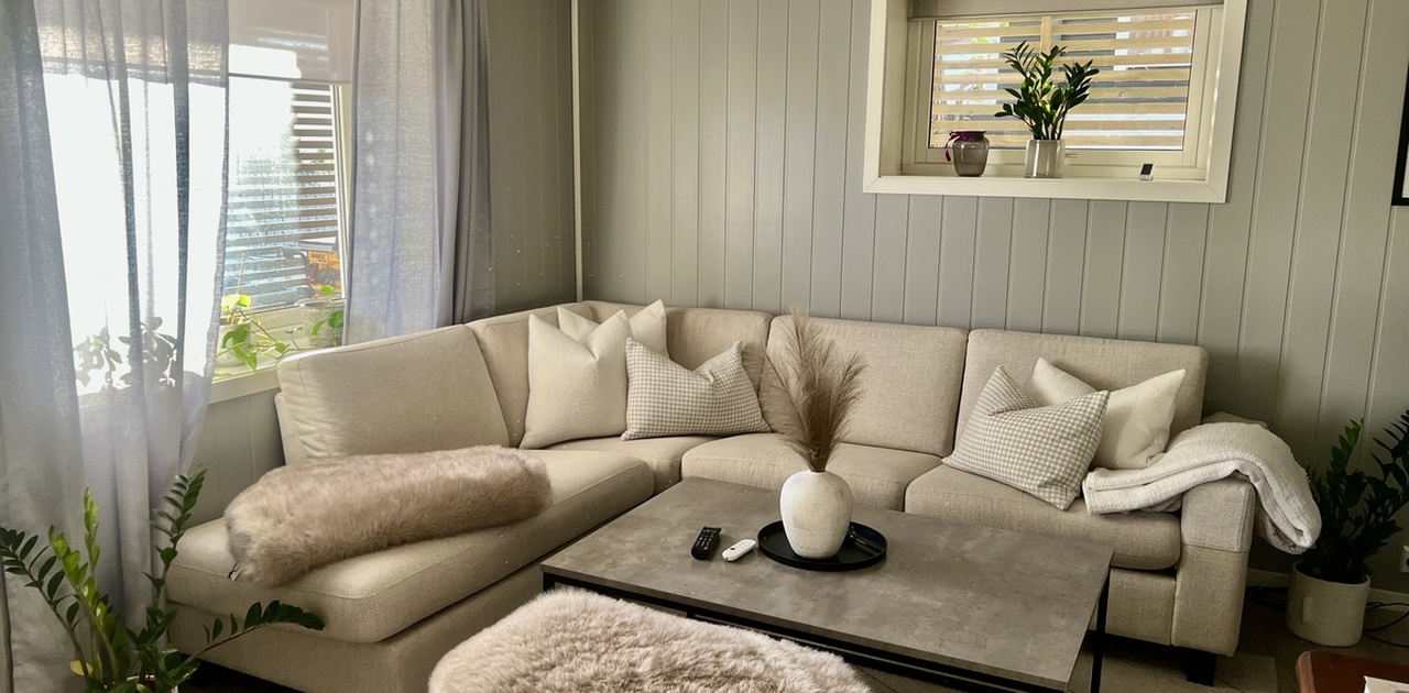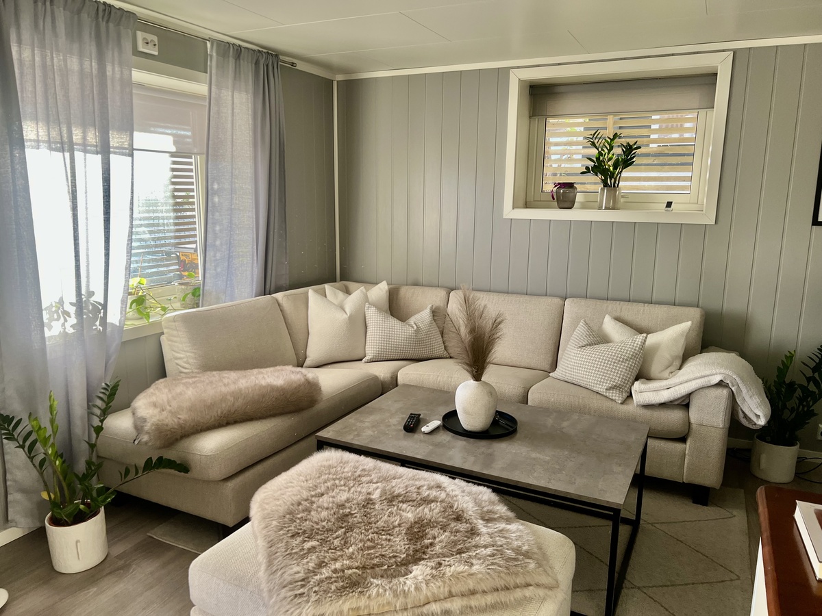 -Lys stue med åpen kjøkkenløsning