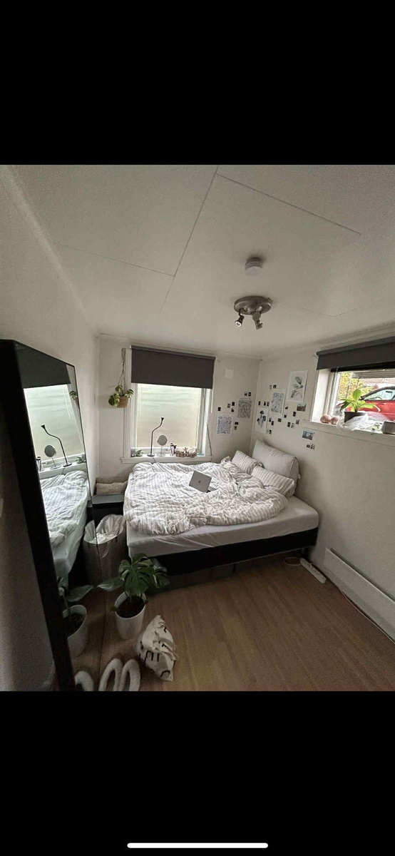 Rommet som leies ut er på ca. 9 kvadratmeter og er møblert med seng (150), klesskap og bokhylle.