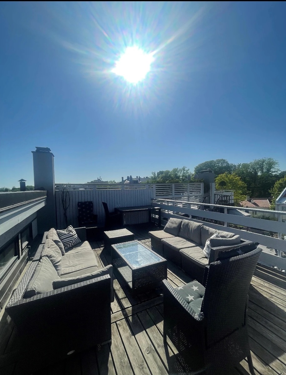 Et stort pluss er den private takterrassen på 25 kvm med panoramautsikt over byen. Perfekt for solfylte dager og rolige kvelder.