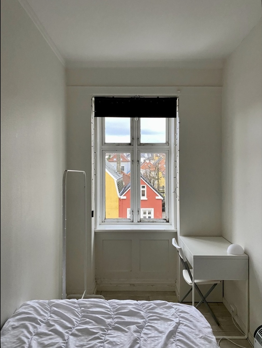 Soverommet er ledig fra 1.1.26 og koster 5000 kr i måneden. Prisen er ikke inkludert strøm, men siden vi er 6 stykker som deler på det, pleier ikke dette å komme på mer enn over 2-300 i måneden (høyere i vintermånedene). Rommet kommer med en 1,20 seng, skrivepult, speil, klesstativ, det er også plass til å ha oppbevaring til klær under seng.