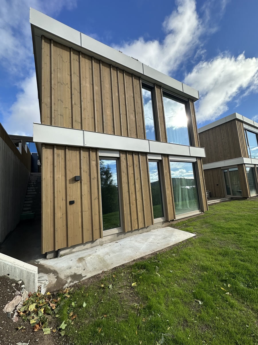 I september flyttet vi inn i vårt nybygde hus på Lund. Boligen er sentralt plassert i med umiddelbar nærhet til badestrand og sjø. Rolig villaområdet, med kort avstand til sentrum, Marvika Torv med butikker m.m.