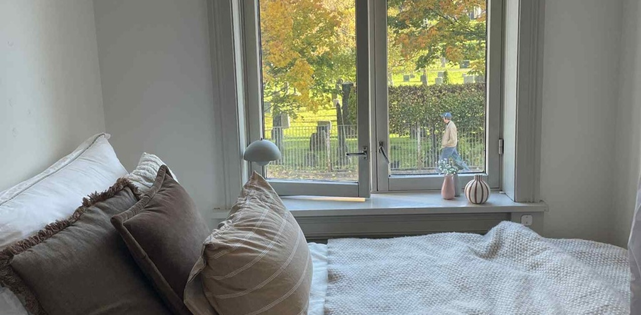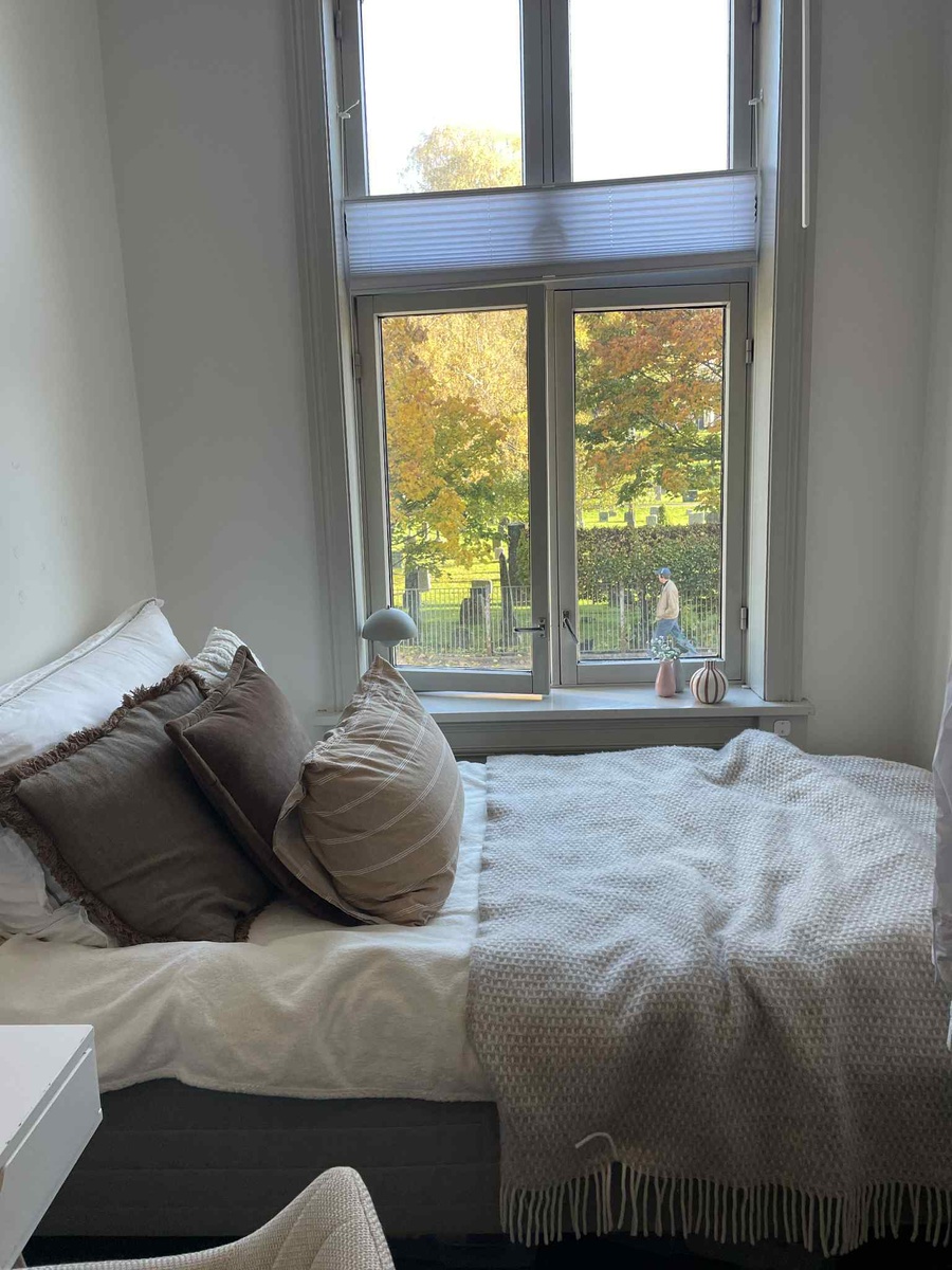 Jeg skal flytte ut fra det koselige kollektivet i Ullevålsveien, så rommet er ledig fra 1.desember! Rommet er på 8m2, men har godt skapplass, plass til skrivebord, seng og har et stort vindu. Leiligheten ligger i en høy 1.etasje, som oppleves som en 2.etasje. Den har et kjøkken, med en liten oppvaskmaskin, et fint bad og en stor stue, og ligger sentralt i Oslo med gåavstand til flere matbutikker, kafeer og sentrum. Leiligheten ligger nærme flere universiteter, det er bl.a. kun 5 min å gå til OsloMet. Du kommer til å dele kollektiv med to søte jenter i 20årene, Pelin og Tommine, som begge studerer. Det er et rolig kollektiv, men med plass til å ha besøk og vors. Leiligheten har i tillegg en fin balkong som vender ut mot bakgården!
