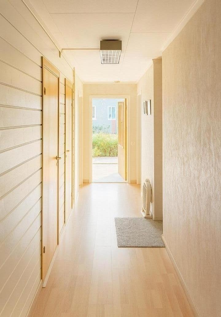 Inneholder: gang, stort oppholdsrom, kjøkken, hovedsoverom, ekstra rom (kontor/gjesterom), bad med dusj og utgang til terrasseområde.