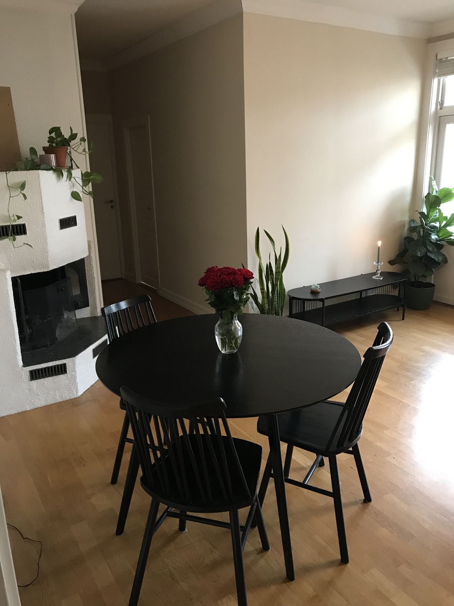 Leiligheten har stor stue m/ peis, stort og fint kjøkken, balkong og bakgård. Det er også stor lagringsplass i kjelleren. Prisen for rommet som leies ut er 6270,- - oppjusteres til 6490,- 1. desember. Strøm kommer i tillegg. På rommet står et stort klesskap, og det følger med ei 120-seng om ønskelig :)