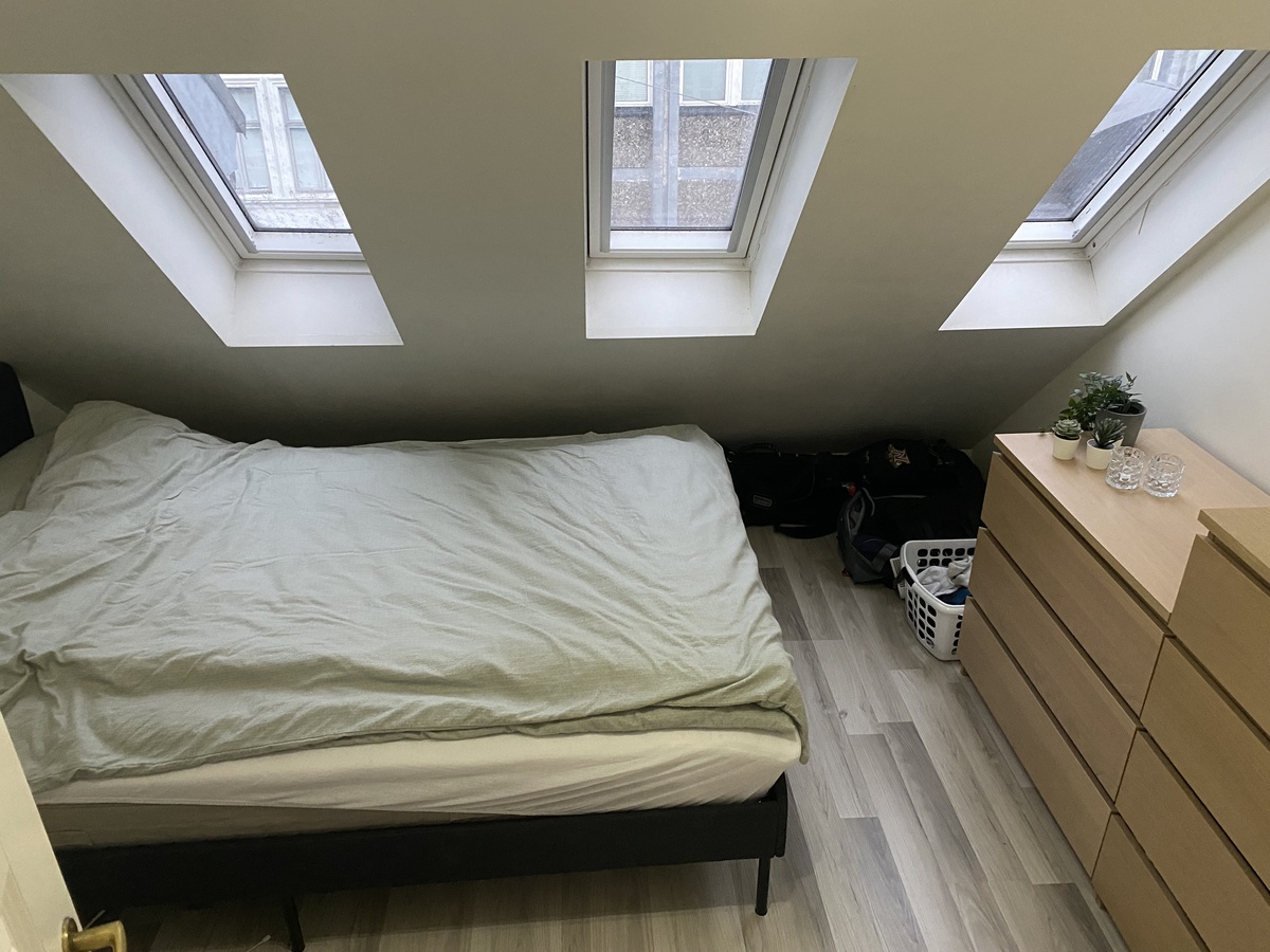 Lyst og trivelig rom på ca. 8–10 m² leies ut midt i Bergen sentrum. Rommet er møblert med 140 cm seng, to kommoder, nattbord og klesskap.